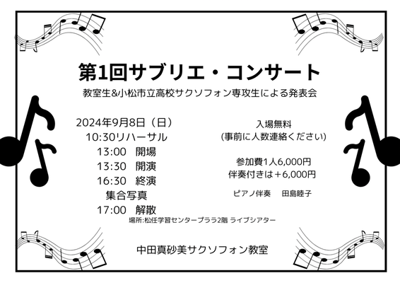 石川県♬中田真砂美サクソフォン教室